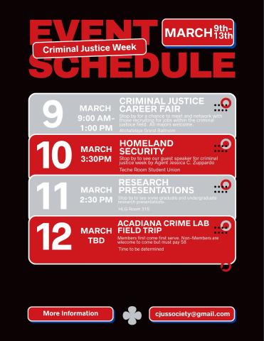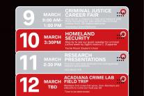Wed, 03/18/2026 - 3:33pmThe University of Louisiana at Lafayette’s Criminal Justice Society has officially concluded its annual Criminal Justice Week, which ran from March 9th to March 13th. The week-long series of events provided students with an immersive look into the professional world of law enforcement, forensic science, and research.